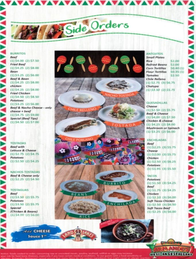 armando's mexican food menu